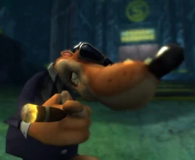 Don Weaso: Ah yeah... tryin' to steal my dough, would you? Y'know what happened to the last guy who tried to do that? // Conker: Ahh... I don't think I need free guesses. // Don Weaso: No. You saw what happened. [referring to his then-recent execution of Paulie]